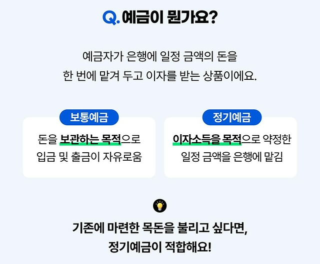 목돈이 있고 안전하게 이자를 받고 싶다면 → 정기예금