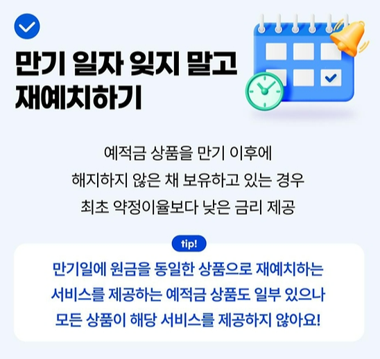 - 예치 기간 동안 꾸준히 돈을 넣어야 만기 시 원금과 이자를 모두 받을 수 있습니다.
