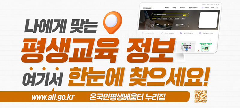 온국민평생배움터는 국민 누구나 쉽고 편리하게 학습 정보를 찾아 활용할 수 있는 평생교육 종합 플랫폼입니다.